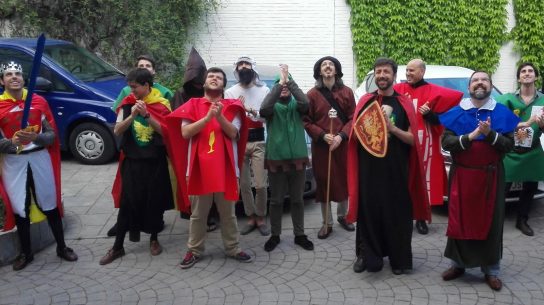 En la tarde del sábado el duque de Bejarano (Pedro Bejarano) dio el pistoletazo de salida a una celebración ausente en estos años y que se volvió a recuperar. Ahí estaban presentes la veintena de residentes que decidieron ataviarse con ropajes para tal ocasión. Acto seguido, comenzaron los juegos medievales, bajo la atenta mirado del mago Aris (Arístides Artal). Ahí los residentes tenían que demostrar su coraje y fuerza en estas pruebas como tiro al arco, la cuña, la ballesta, el pulso, la cuerda, entre otros. Pero faltaba lo más importante, lo que los residentes estaban esperando: la CENA MEDIEVAL. Situada para la ocasión en el patio interior del colegio y que pudieron degustar los manjares: cochinillo, pollo, salchichas, cerveza franciscana… rematada con una Queimada del mago Aris, ya en la noche oscura del sábado. Finalmente, se proyectó en la sala de estar la película Excalibur como colofón final a esta jornada y esperando a que no tarde en repetirse tal efeméride.