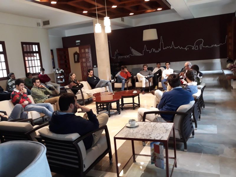 De esta forma, Alfonso de Julios ha compartido un agradable rato de tertulia con los residentes del Mayor. Temas encima de la mesa había, y muchos, pero no se podía empezar con otro: la Madrugá. El año pasado, una serie de desafortunados incidentes mancharon la noche mágica sevillana y la Esperanza de Triana fue una de las hermandades más afectadas.
