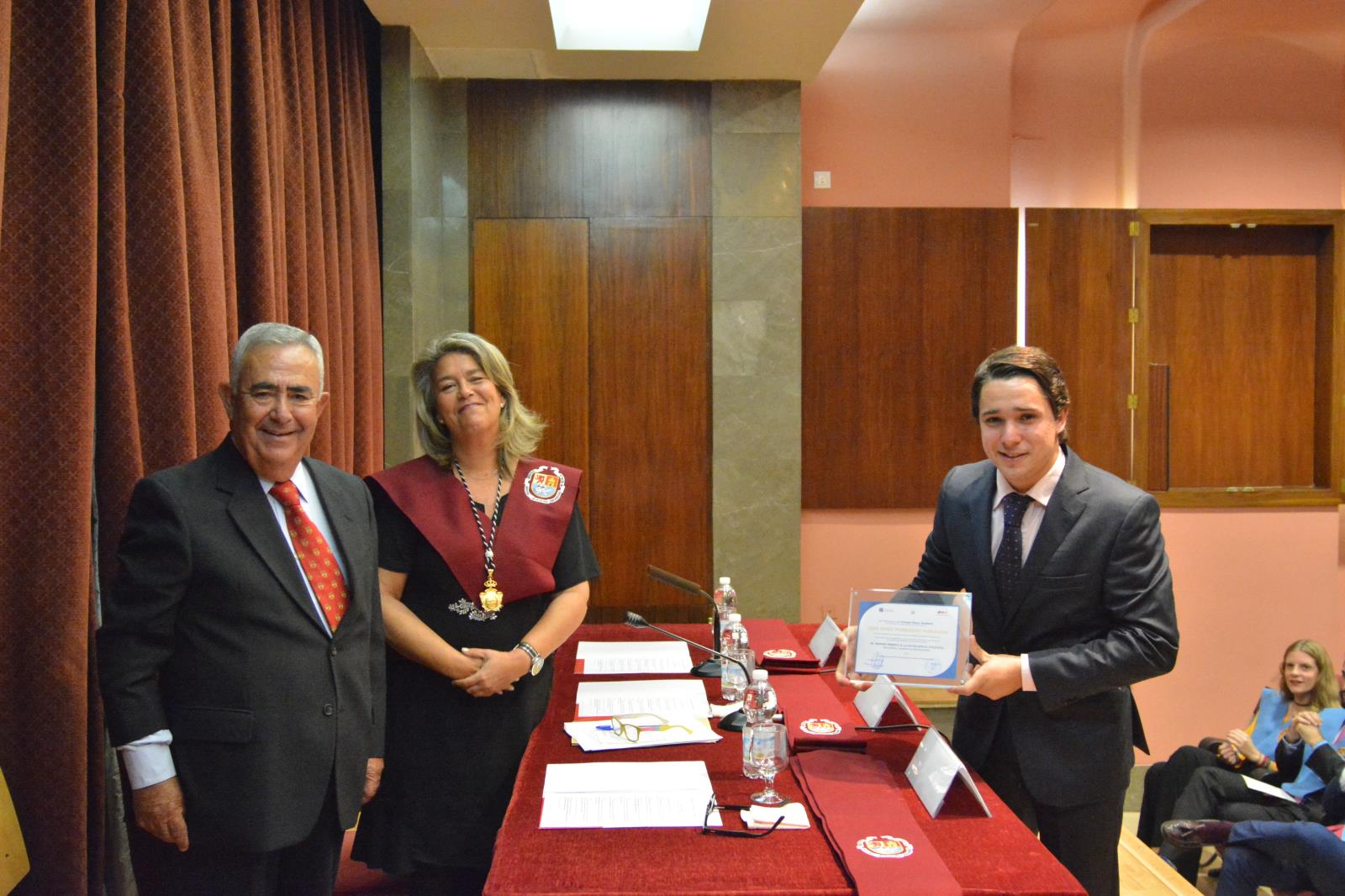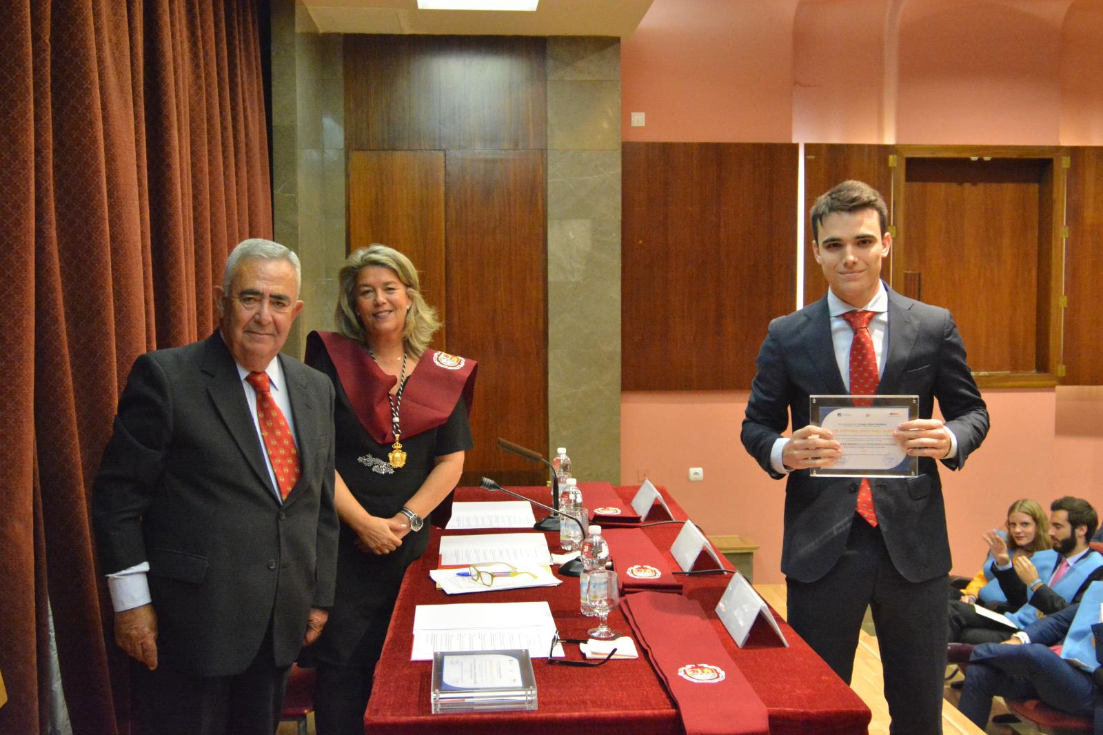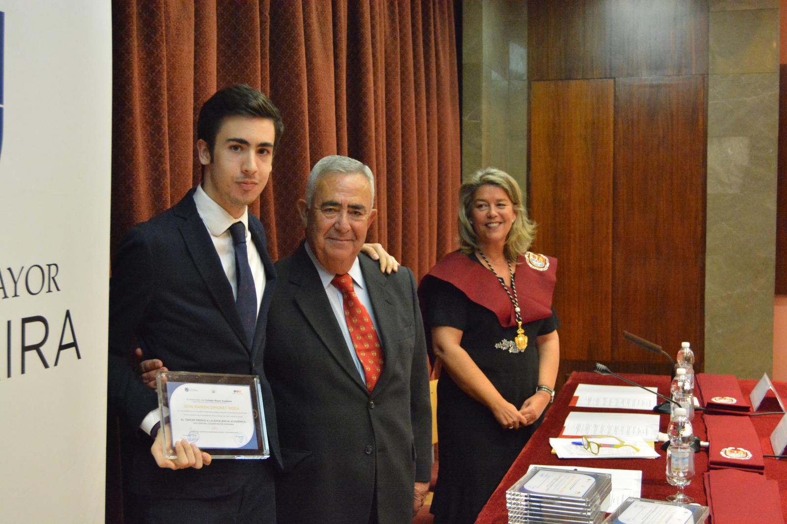 Posteriormente, el decano regaló a los asistentes unas brillantes palabras que emocionaron al salón de actos en su plenitud. Unas palabras cargadas de sentimiento y afecto hacia lo que ahora es su familia. Y justo después de él y antes de que Elena Cano, la vicerrectora de la US, pusiera fin al acto, se hizo entrega de las Becas de Honor al ex director del Mayor, Javier Luján Torres, y al afamado periodista y columnista de ABC, D. Antonio Burgos. Fue precisamente este último quién rompió el camino preestablecido y proclamó una brillante alocución que desató las carcajadas de los residentes y familiares. Sin duda, una intervención genial.