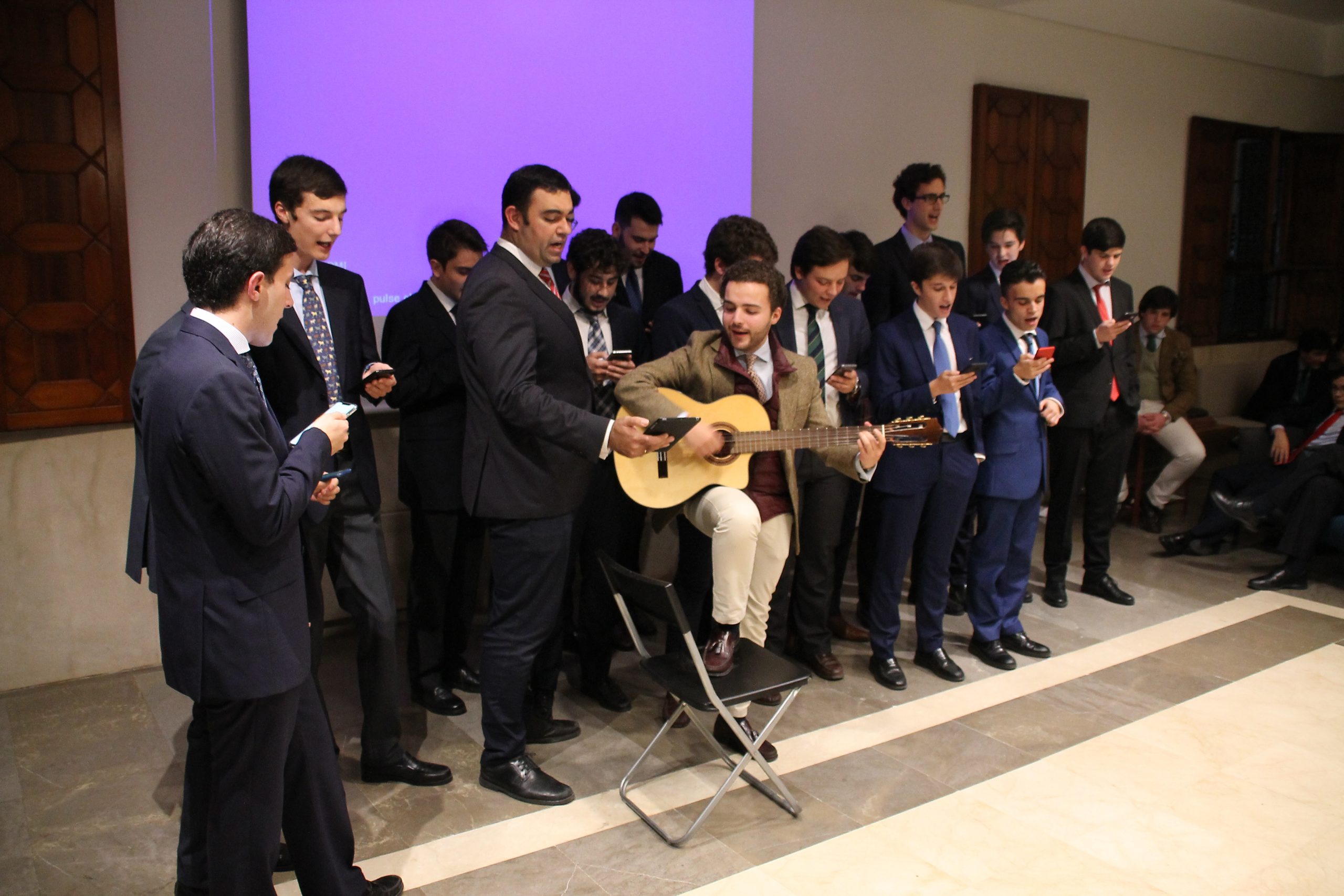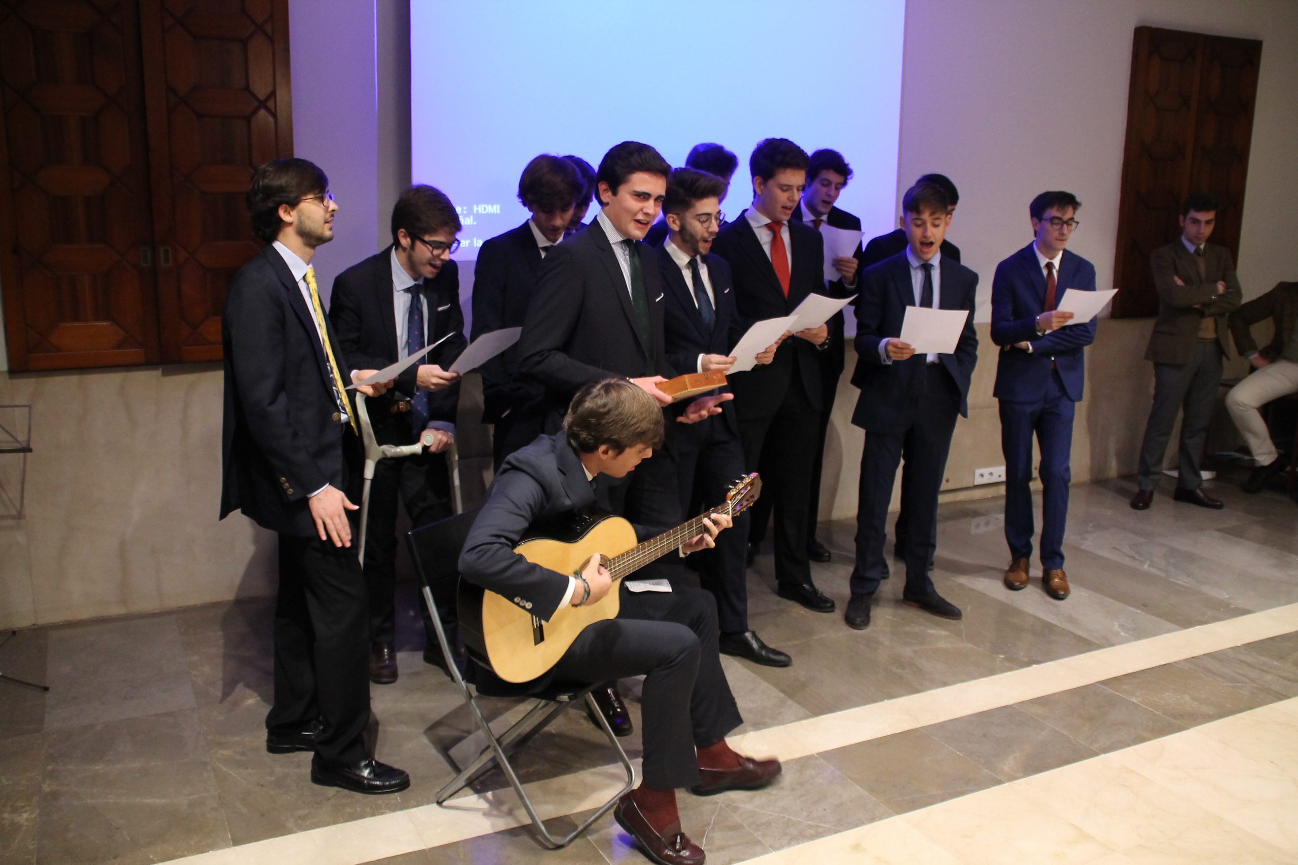 La noche no quedaba ahí, tras el tradicional brindis del decano, dio comienzo un concurso de villancicos según las zonas de las habitaciones del Mayor. ¡Qué buen rato! El ganador fue, por segundo año consecutivo, la zona “Ciudad”, que preparó un popurrí navideño que nos dejó muchas risas. Cabe destacar también la actuación de “Triunvirato II” y su villancico jerezano.