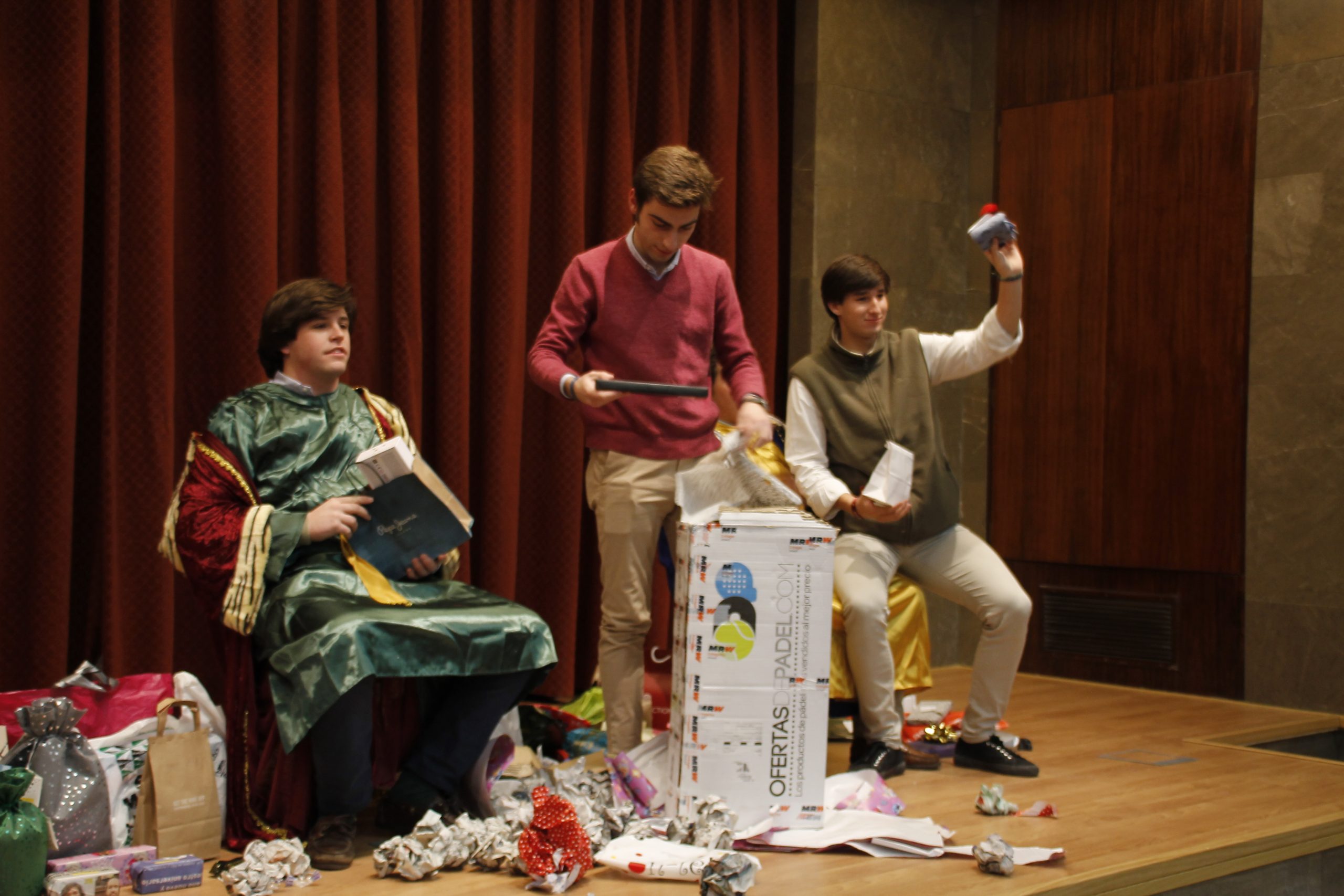Los Magos de Oriente también pasaron, aunque con algo de retraso – día 11 – por nuestro colegio mayor. Tras el almuerzo del sábado, los residentes fuimos al parking desde donde se veía el balcón por donde los magos recordaron lo bien que nos habíamos portado, y, por tanto, la cantidad de regalos que habían traído, ya de rebajas, al Mayor.